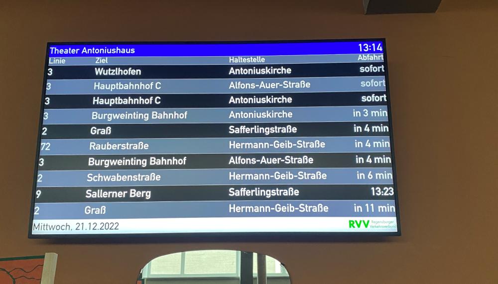 Bus-Abfahrtsmonitor im Antoniushaus © Theater Regensburg