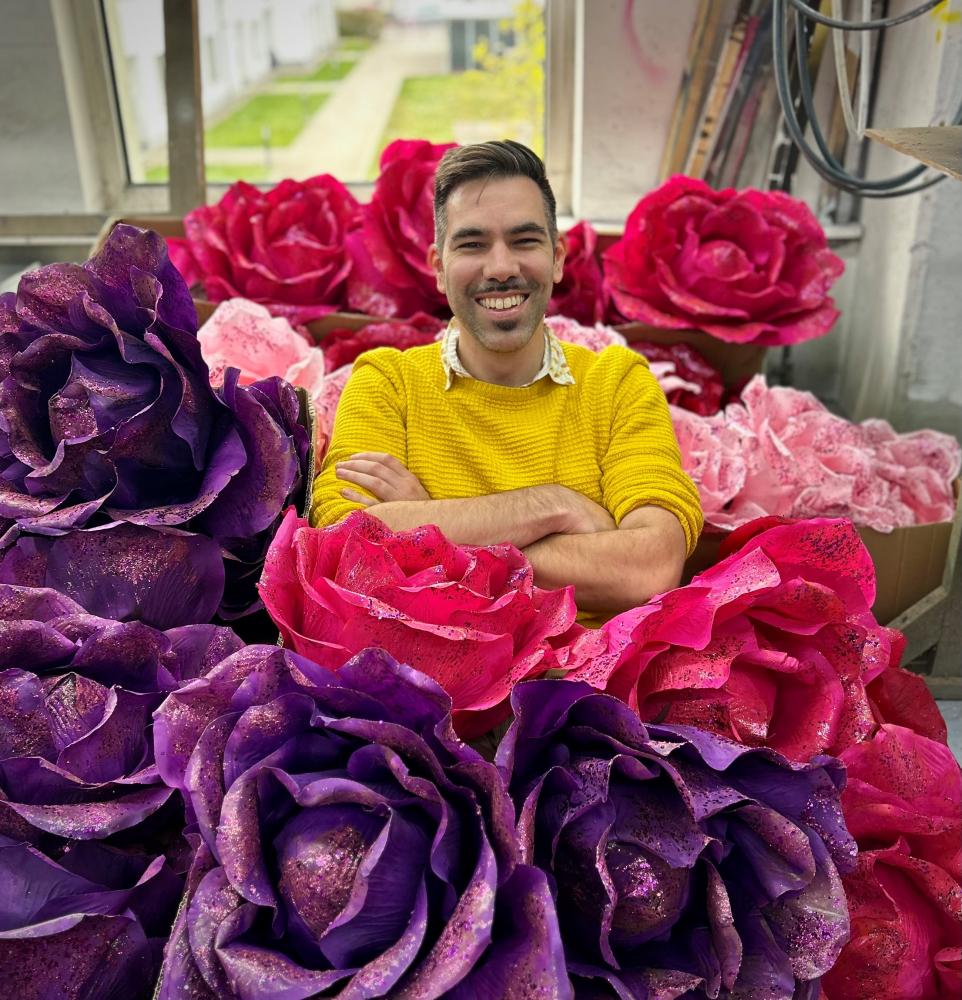 Kristopher Kempf Im Stück spielen die Rosen von Schiras eine große Rolle, sie werden vom Prinzen immer besungen, er bezeichnet seine Frauen als Rosen, aber er spricht auch immer von den Rosen von Schiras und deshalb spielen diese Rosen natürlich auch in meinem Bühnenbild eine große Rolle. Im Deckel hängt ein überdimensionales Rosenbeet. Es wird ordentlich glitzern und schillern, also Operette sich wer kann.