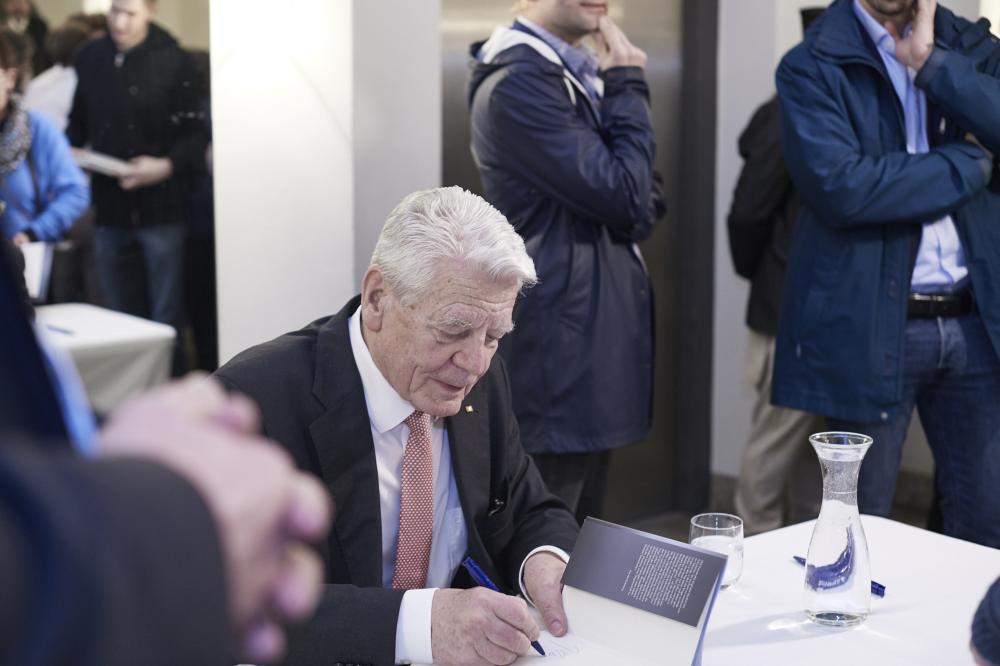 Bei der anschließenden Signierstunde bildeten sich eine geduldige Schlange. Es war ein beeindruckender und ermutigender Abend, gerade auch, weil Gauck klar gesellschaftliche und politische Probleme aufzeigte und mit seiner Haltung großer Menschenfreundlichkeit überzeugte. Wir freuen uns, die Veranstaltung bei uns zu Gast gehabt zu haben!