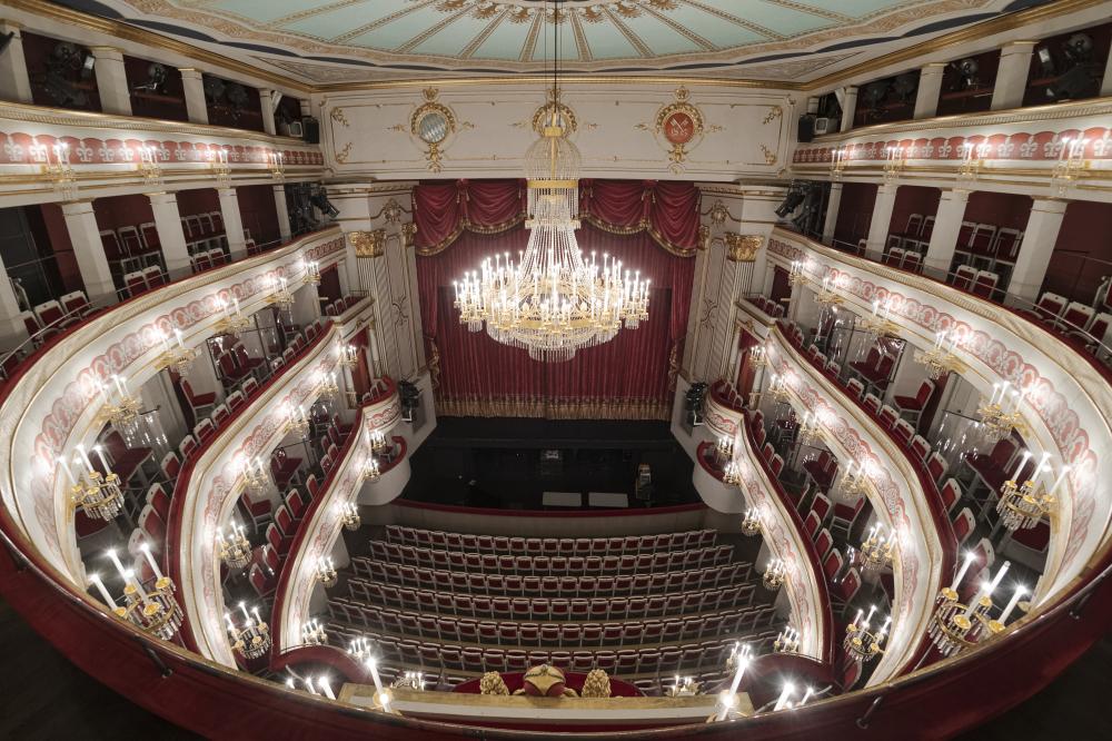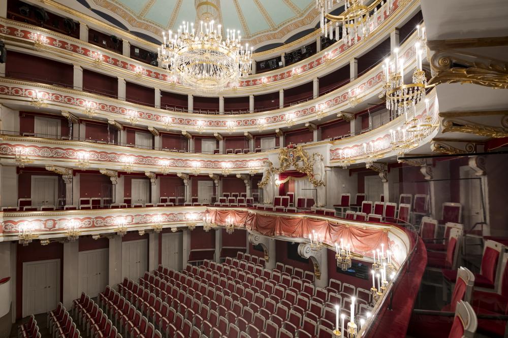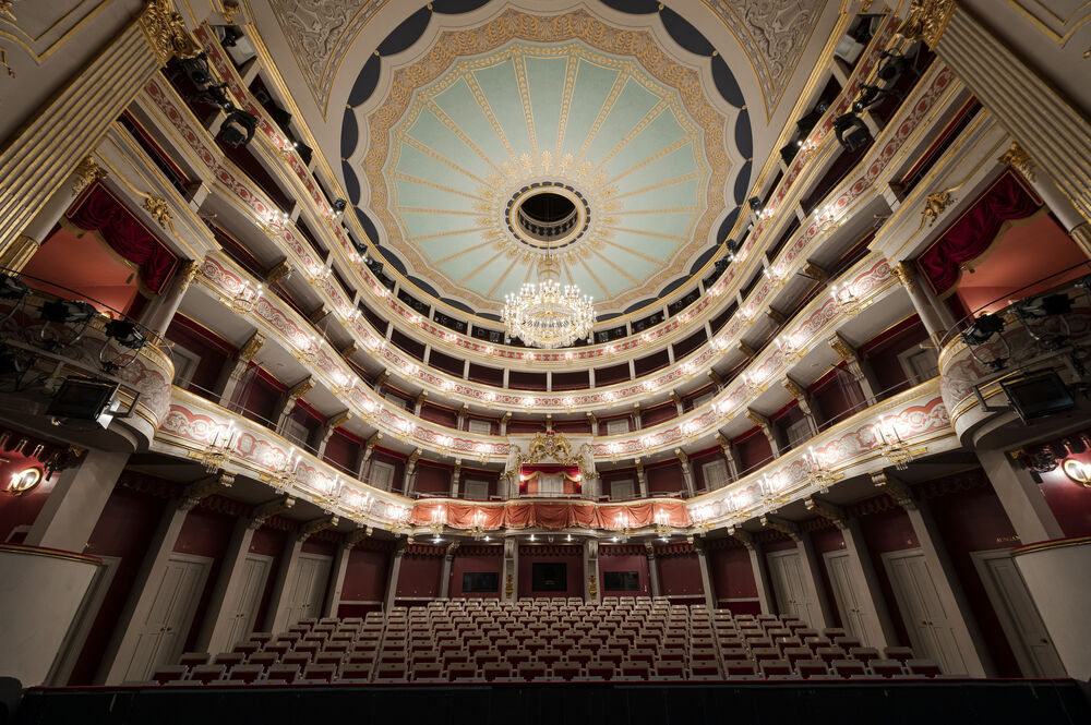 Das Rangtheater im klassizistischen Dekor wurde in den Jahren 1803/1804 erbaut und seitdem mehrfach renoviert und modernisiert. Auf der technisch gut ausgestatteten Bühne (mit Drehbühne, Drehring, Hubpodien etc.) werden u. a. Opern, Operetten, Musicals, Tanz und Schauspiel gezeigt. Das Theater bietet auf drei Rängen bis zu 520 Sitzplätze, der vierte Rang dient als Galerie für die Beleuchtungstechnik.