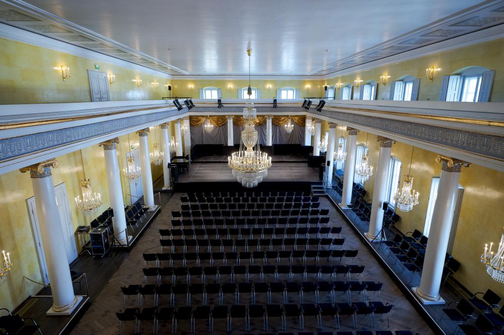 Der festliche Neuhaussaal bietet unterschiedlichster Nutzung und variabler Besucher*innenanzahl Raum. Er fungiert als Konzertsaal für das Philharmonische Orchester Regensburg. Im klassizistischen Ambiente mit hervorragender Akustik finden bis zu 400 Besucher*innen Platz. Der Saal kann auch für andere Veranstaltungen wie z. B. Empfänge angemietet werden.