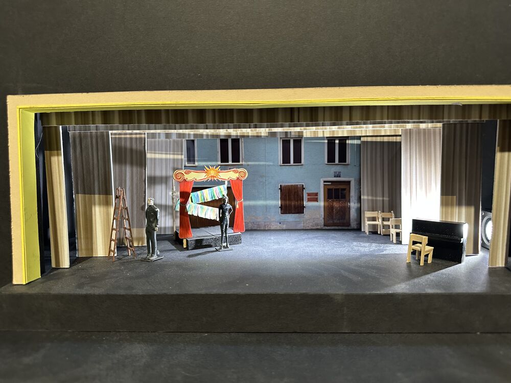 Es wird überprüft, ob die Bühnenbildentwürfe tatsächlich auf der Bühne im Antoniushaus umgesetzt werden können.