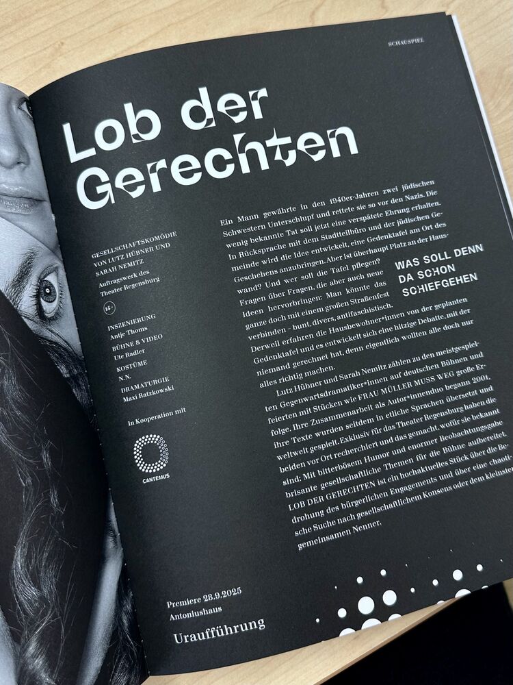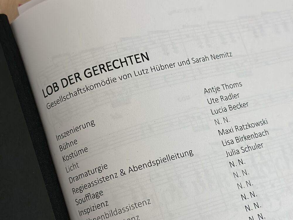 Alle Beteiligten, auch der Verlag, stimmen dem Projekt zu und mit diesem Go wird sich in die Arbeit gestürzt. Man einigt sich auf die Stückidee mit dem Arbeitstitel LOB DER GERECHTEN.